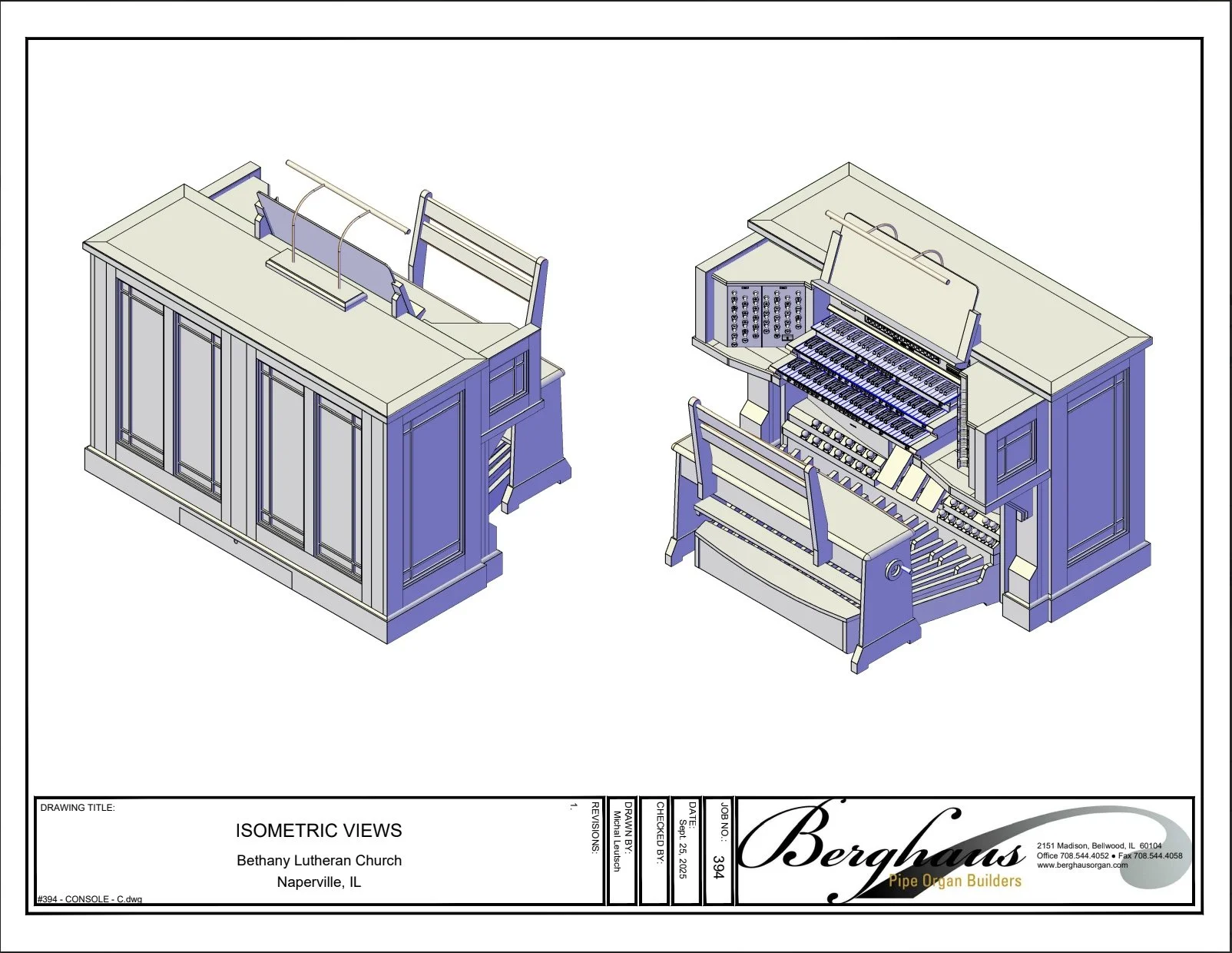 Over the past few months, Berghaus Pipe Organ Builders has been fabricating various components for our new pipe organ in conjunction with other projects they have been working on. Very soon, they will be transitioning to nearly full-time work on our project! The design and features of our new console have been finalized, and nearly all of the other details and specifications for the instrument have been reviewed multiple times. Our project is highly customized due to the unique loft layout which encompasses 55 linear feet and has multiple architectural aspects to work around. Their team is excited for this opportunity and prepared to meet the challenge!
