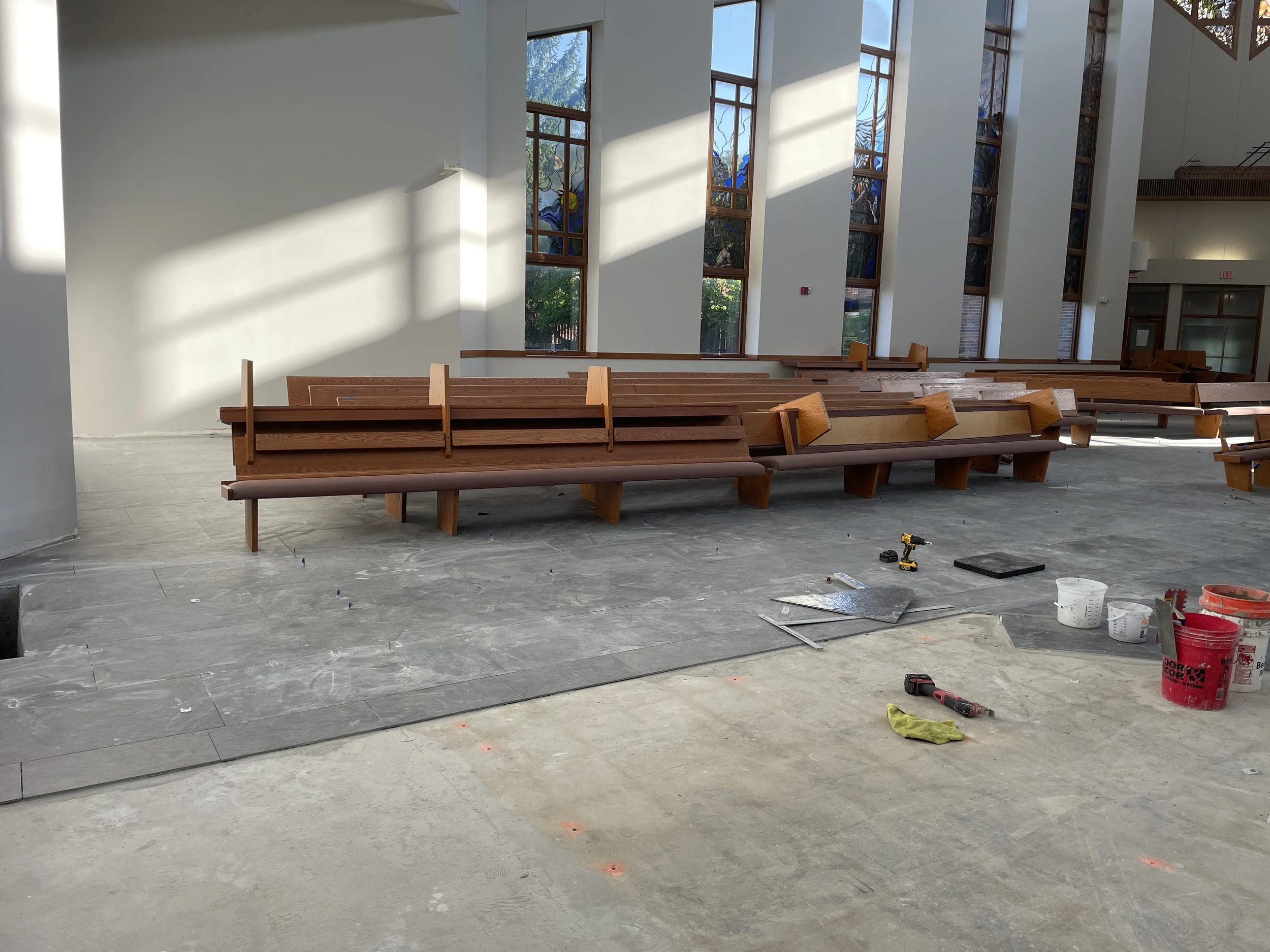 The baptismal font and pools have been removed. All the flooring that is to be removed has been removed.