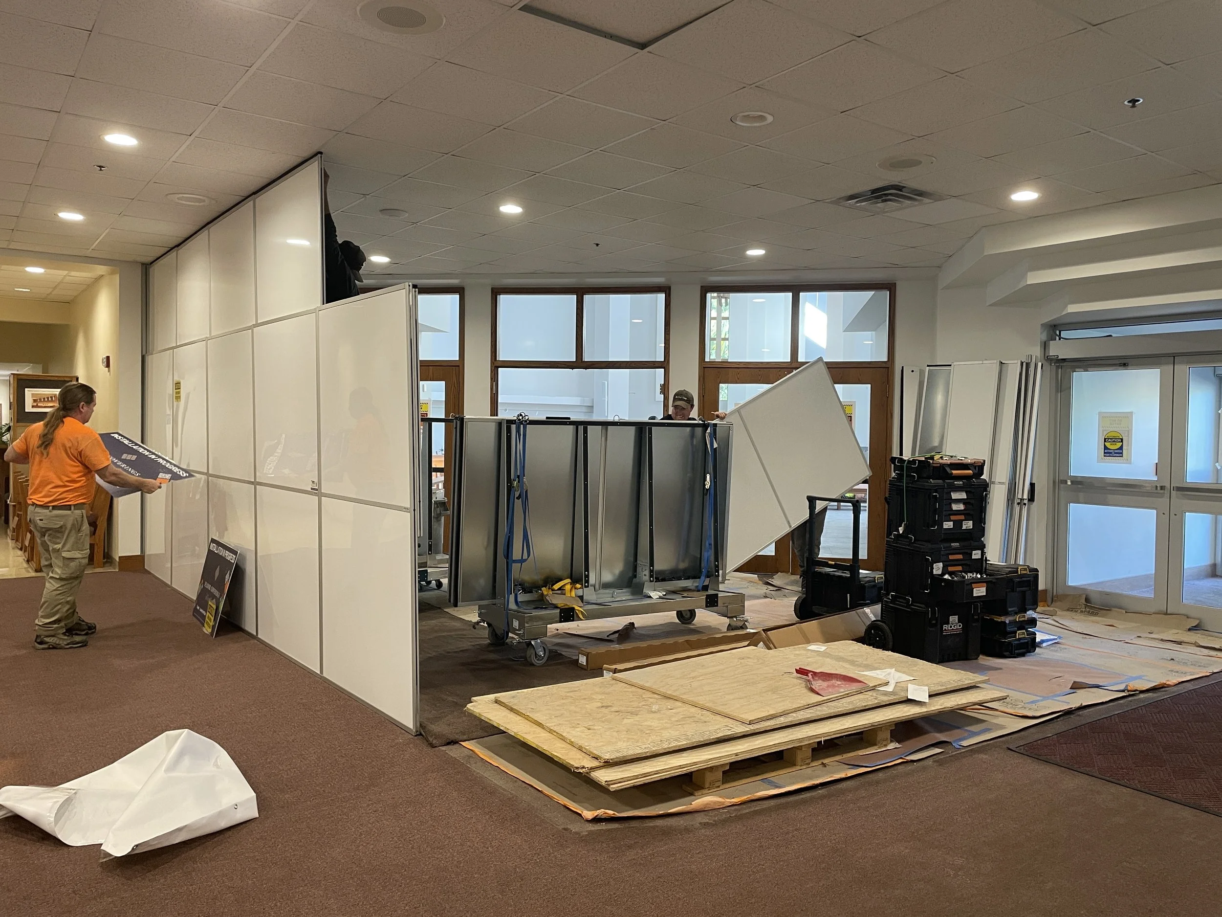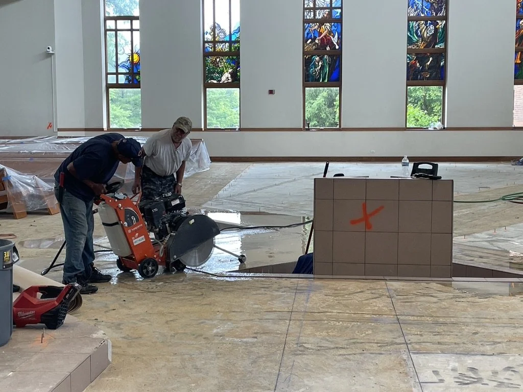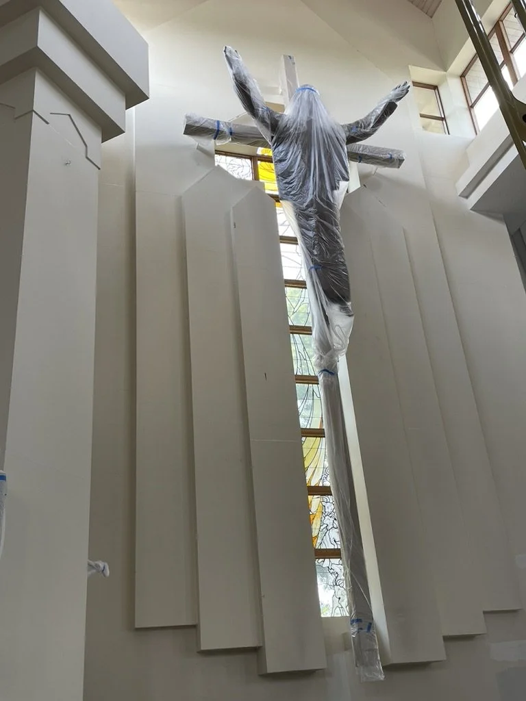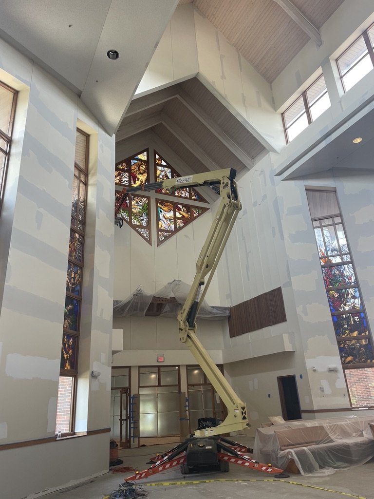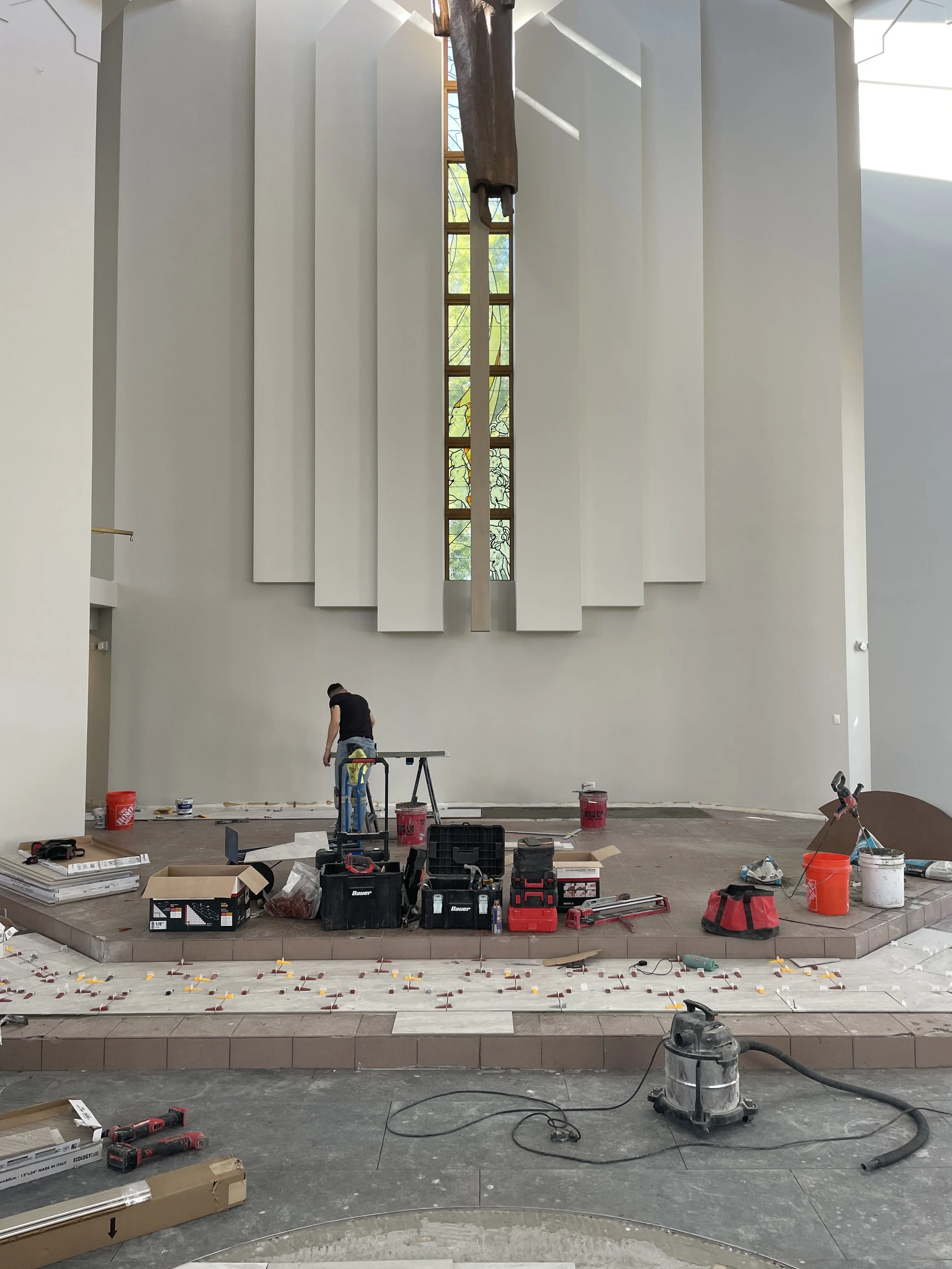 This has been a week of massive efforts by many workers and volunteers to prepare our wonderful sanctuary for worship. The sound system has been reactivated, and one of the livestream cameras has been moved for even better views. The cleaning crew came in to vacuum all the pews and clean all the nooks and crannies. Volunteer ladies have been polishing the wood on the pews, and replacing the felt sliders on the bottoms of the chair legs. Other volunteers put the hymnals, Bibles, attendance cards, and offering envelopes into the racks. More volunteers moved the chancel furniture and the organ back in, and the choir chairs back into place. Communion ware is being returned to the sacristy, as well as all the robes for the sacristans, ushers, and pastors. The ushers’ gear has been returned to their closet.