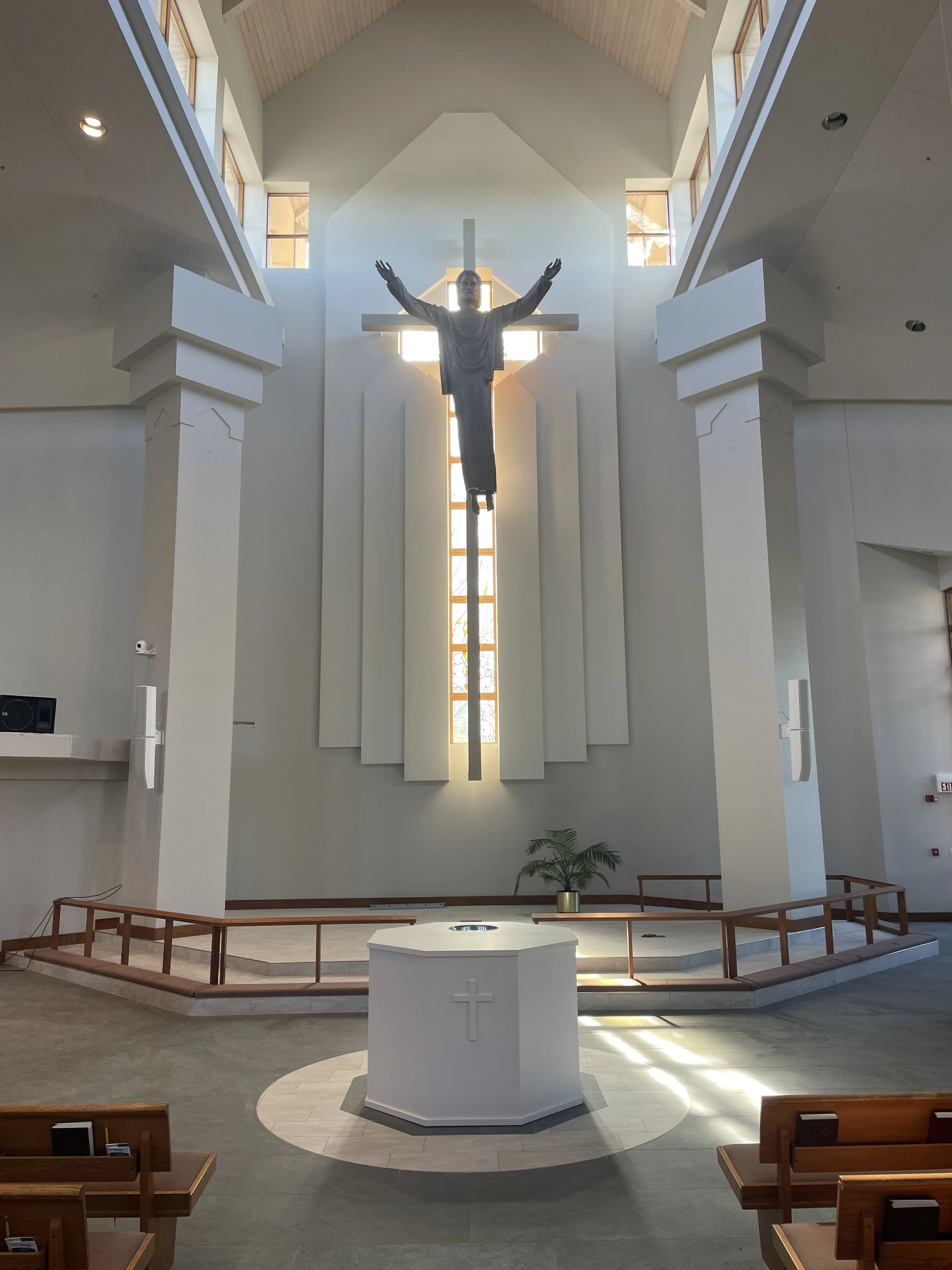 Dave Groth built a temporary font for us to use until our permanent one is ready (hopefully by Easter 2026). It is a bit larger than our final font will be but is a similar concept. Thanks, Dave!